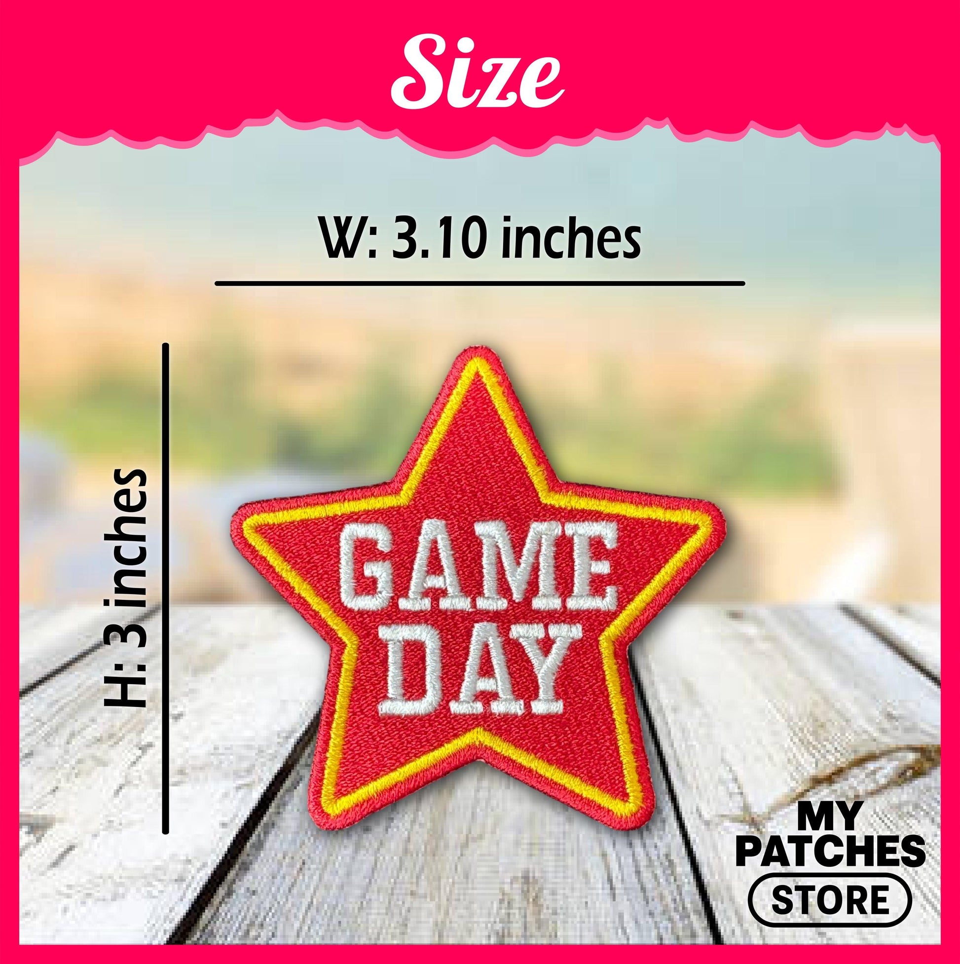 Game Day Star Patch: Red Checkered Embroidery, Iron-On Sports Patch (15 pcs min)